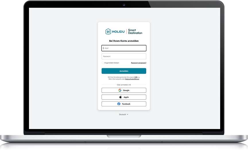 Zugang zum Holidu Smart Destination mit Single Sign-on (SSO) für Destinationen, Hotels, Ferienwohnungen und Erlebnisanbieter.